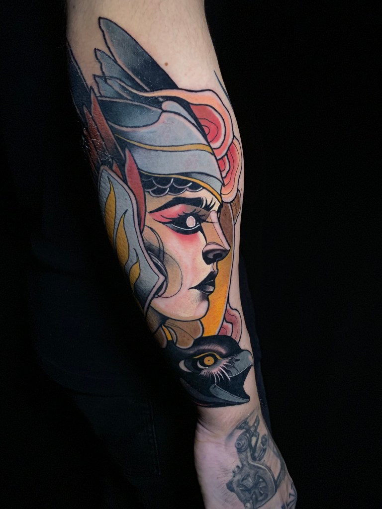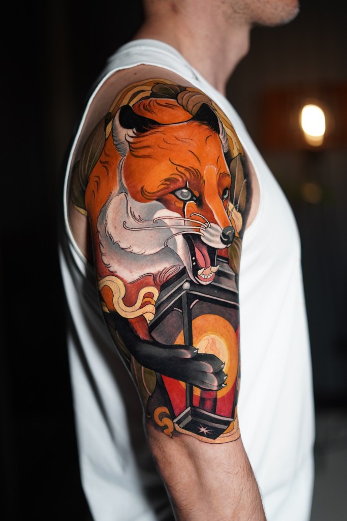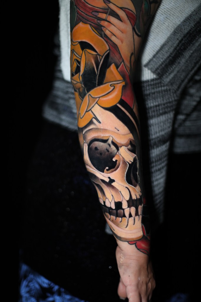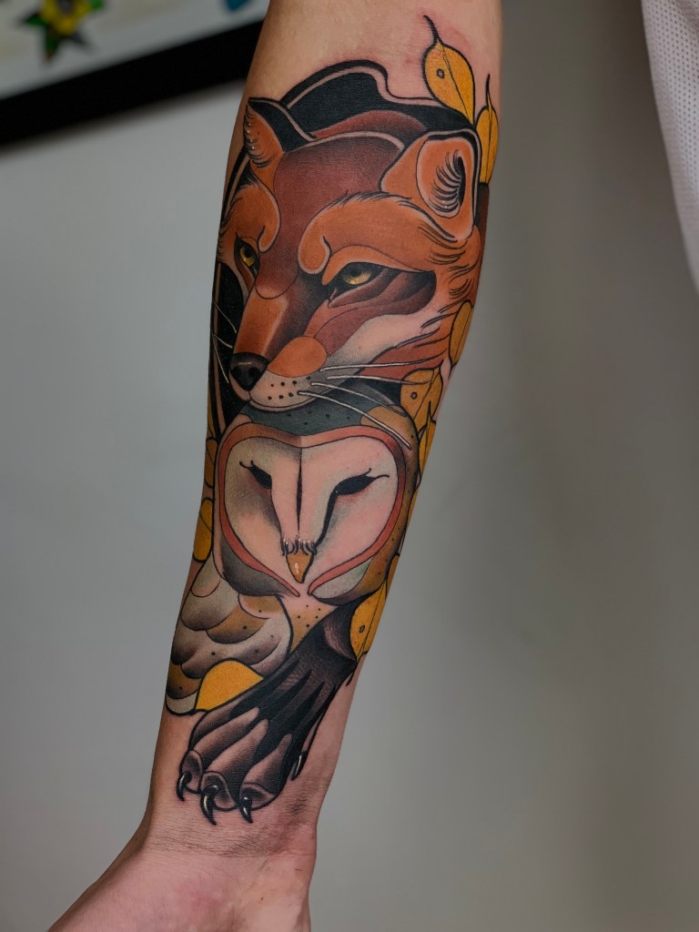 Es un estilo ilustrativo influenciado de los tatuajes tradicionales y modernos donde se logra mucha solidez ,es el estilo que más me influencio desde mis inicios en el arte del tatuaje .