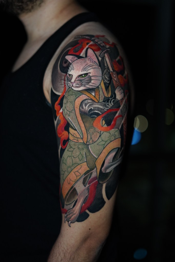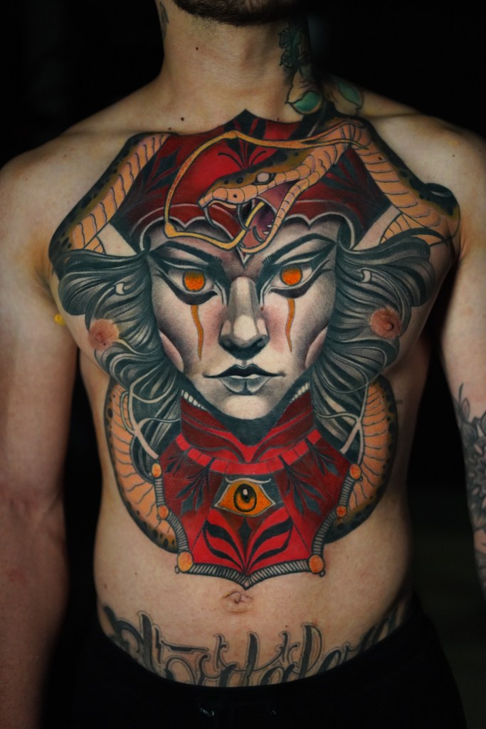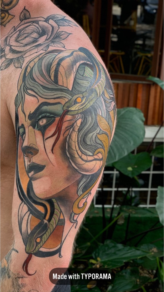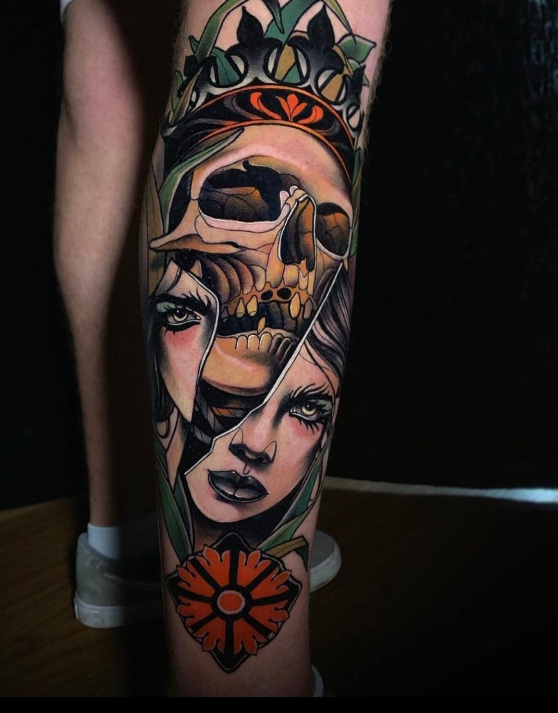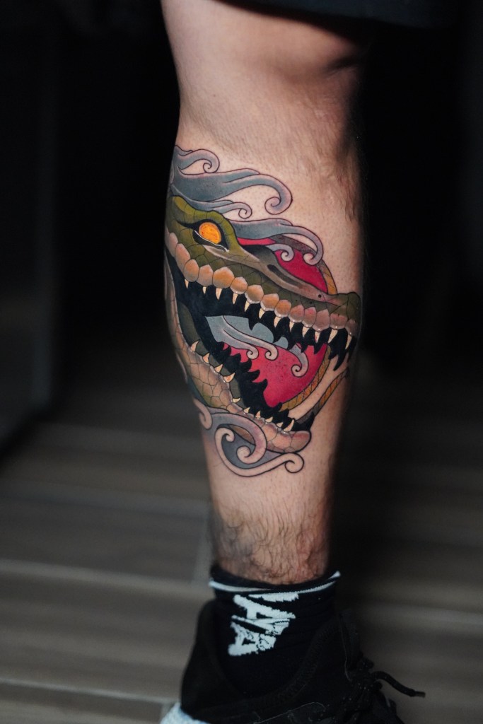 Es un estilo ilustrativo influenciado de los tatuajes tradicionales y modernos donde se logra mucha solidez ,es el estilo que más me influencio desde mis inicios en el arte del tatuaje .